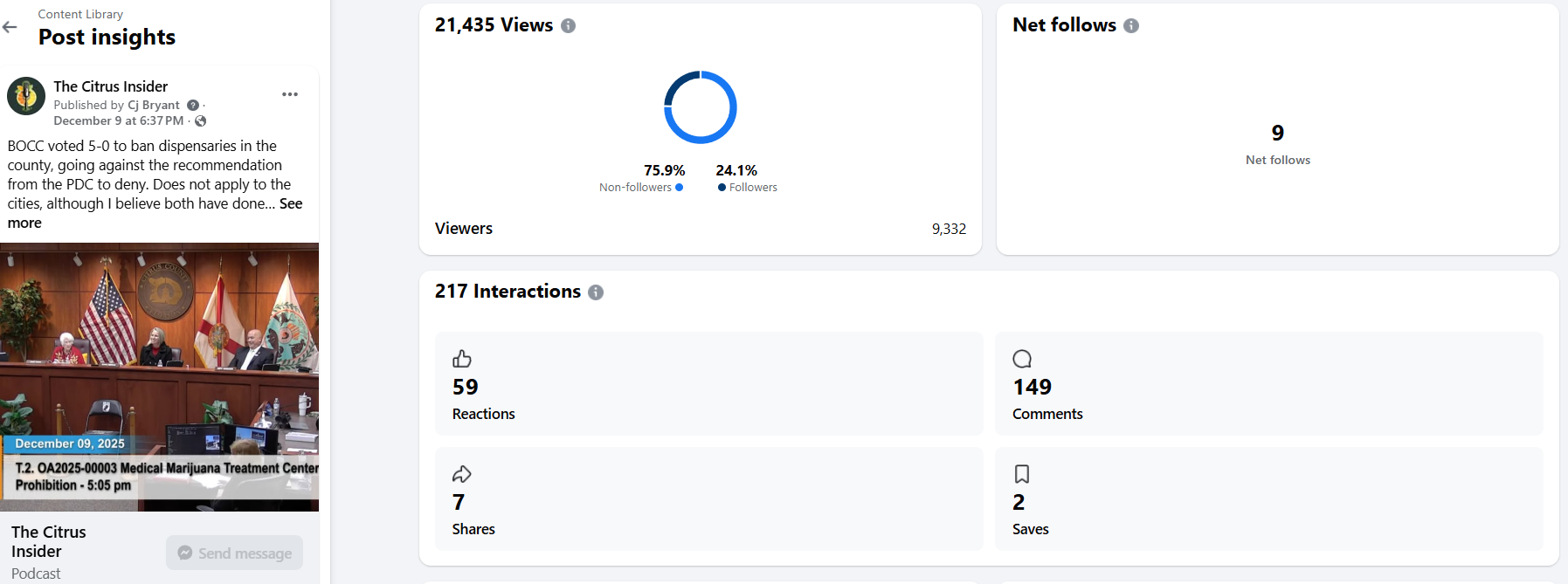 The two posts regarding the BOCC voting to ban dispensaries brought a total of 49,863 views and 255 comments, which takes the top spot for comments outside of the excavator post mentioned above. I am including both posts because they are related to one another and regard the same topic.