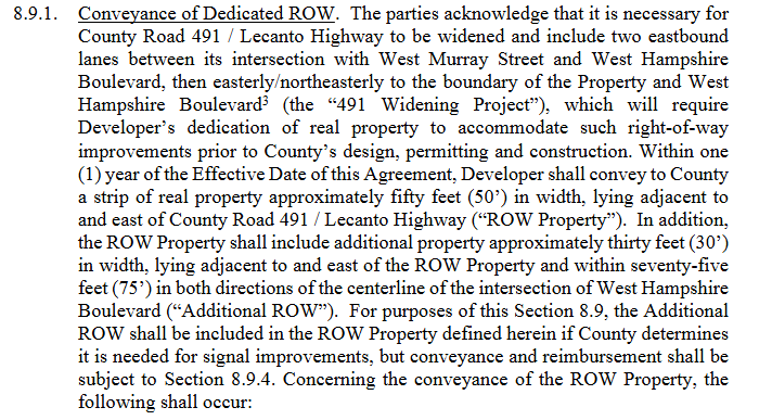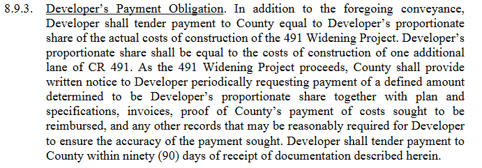 Remember, they owe us right of way through their entire project. To date, their development agreement is STILL not finalized, but here is what was presented to the BOCC in July.