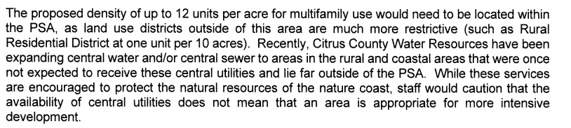 Or take this quote from the staff report and mention that this use seems to be too intense for the area as central utility availability should not indicate a project is good for that area.