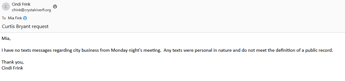 A few weeks ago, I got tipped off about the upcoming vote by the Crystal River City Council to remove the City Manager Audra Curts. I covered that in 3 previous posts.