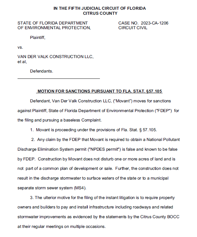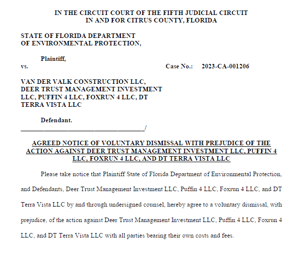Then there is the Florida Department of Environment protection lawsuit against Van der Valk and others, claiming similar things.