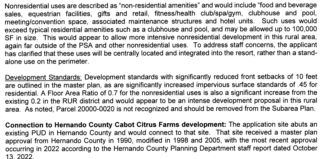 Keep in mind here that it was Cabot that was trying to buy part of the Withlacoochee State Forest from the state to expand their golf course property. I assume that would have been part of this project. This particular project will expand their project that was approved in Hernando County.