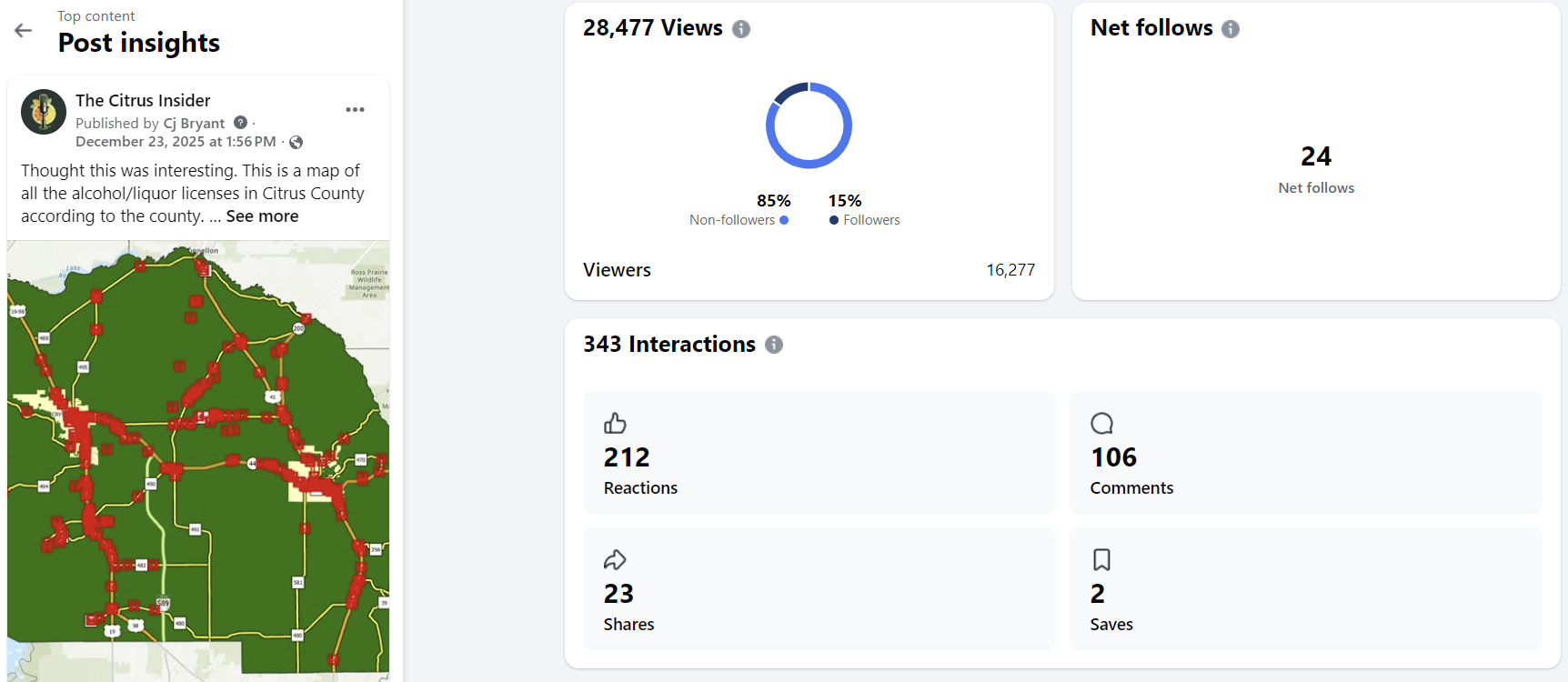 As you can see here, there was a lot of conversation from this image. 106 total comments to be exact. That does not count the comments on the other 23 shares that happened.