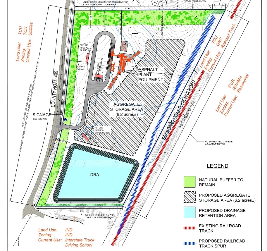 On January 6th, an application was filed for a land use change to allow an asphalt plant. This one is a bit different than the concrete plant. They are wanting to change the zoning of the property from general commercial (GNC) to industrial. This requires BOCC approval. They cannot just go and build an asphalt plant in this location.