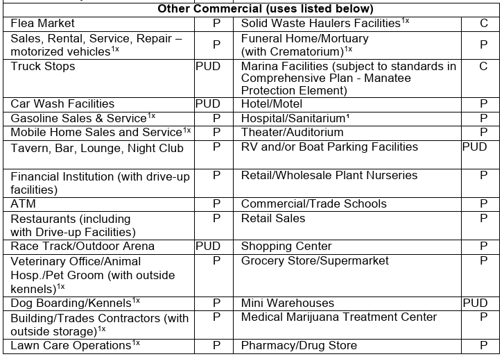 Notice I highlighted "Industrial". There are some industrial uses allowed in GNC zoned property on a conditional use basis, meaning they need county approval, but not necessarily BOCC approval.