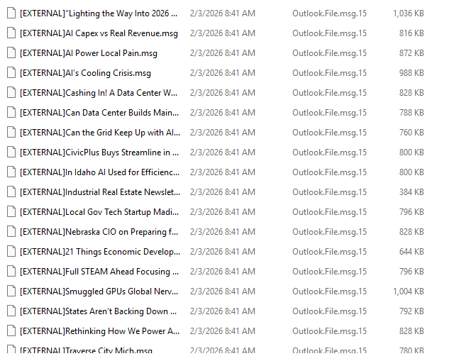 It appears that there has been research into data centers as there are several emails in the inboxes regarding resources for data centers, AI, economic impacts of them and so on. These are your "signup for more information" type emails that are sent out to contacts on an email list.... junk mail if you will. But those generally show up when someone is researching something.