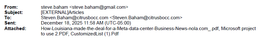 Steve Baham also emailed himself some articles about Data Centers. He is doing research as well.
