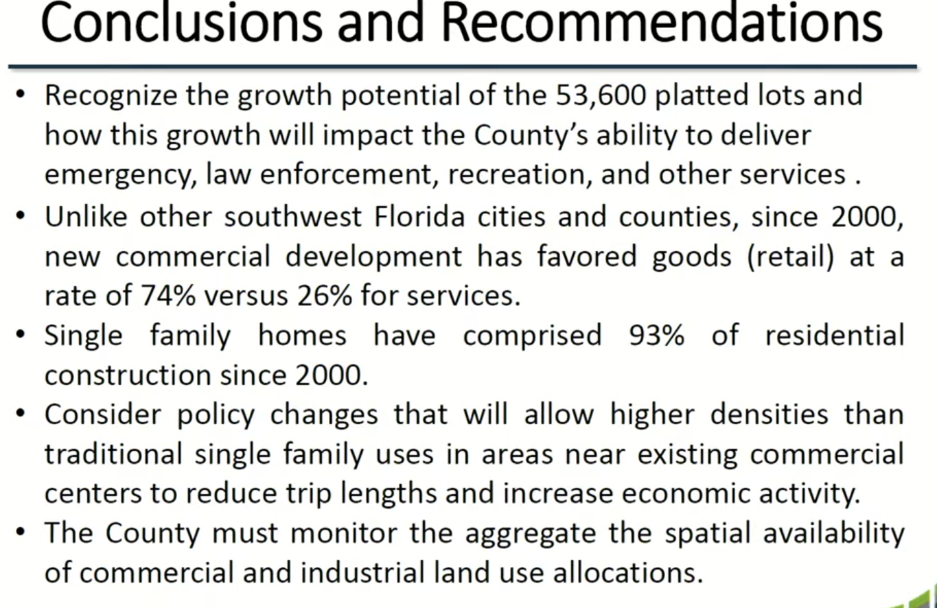 This next slide shows the existing RV parks and the proposed RV parks. He made an interesting comment in saying that we are "The RV capital of the world". He went on to say that we are unique in the number of RV parks/resorts we have in this county as other counties do not come close. He did mention there was an opportunity here to capture more revenue for impact fees and whatnot from these parks. Not sure if we are currently collecting those.