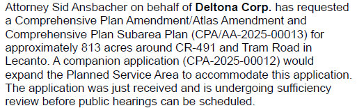 Keep in mind the clock is ticking on this. DeSantis wants to limit data centers and there are two bills going through Florida Legislature right now that would do that. If this is approved before those take effect, then they can avoid much of that I assume.