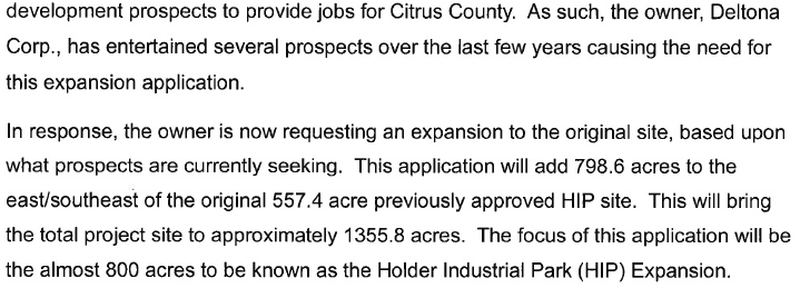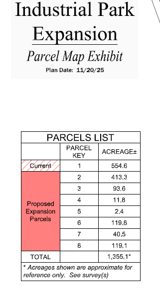 The proposal here is to expand the acreage of the Industrial Park by roughly 800 acres, bringing the entire park site to approximately 1,355 acres, from the original 554.6 acres that was previously approved.