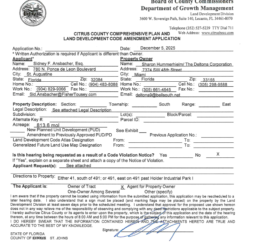 Going back to 2015, Duke Energy and Deltona Corp (owner of the property) worked with the Citrus County Economic Development Agency to conduct a feasibility study for this parcel to create an industrial park. The study was done and showed that it was feasible, but lacked some infrastructure, mainly water and sewer.
