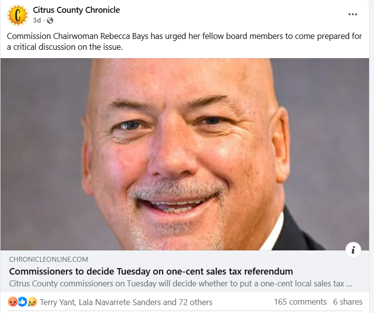 I would rather see a discussion and then the Chamber or whoever (North Florida Land Trust?) take the reigns from there for a public education tour so to speak to get feedback on that specific proposal... or ideally.. BOCC backs off the specifics and lets that entity facilitate it all and show data of where support is.