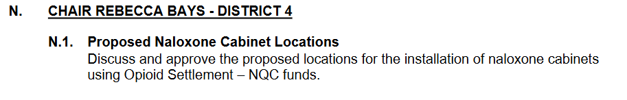Normally, this is where individual items the chair (and other commissioners under their names) are added to be discussed. These follow the agenda deadlines. Under Commissioner Bays on Tuesday was this agenda item.