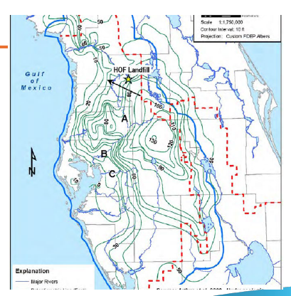 Well the diagram shows that the water flow in the aquifer is Northwest from the site. That means all of this leachate will be headed towards Citrus County.