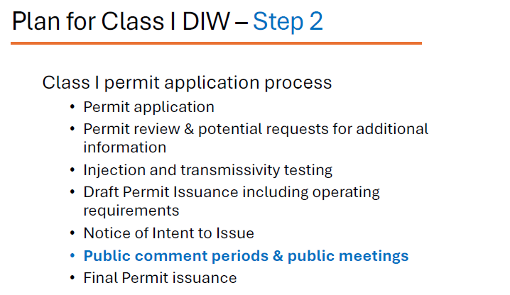 Currently, the well is around 1400 feet deep after 13 weeks of drilling. Not quite halfway there. Once they hit the target depth, they will need to do some testing and then apply for the Class I permit if the tests are favorable.