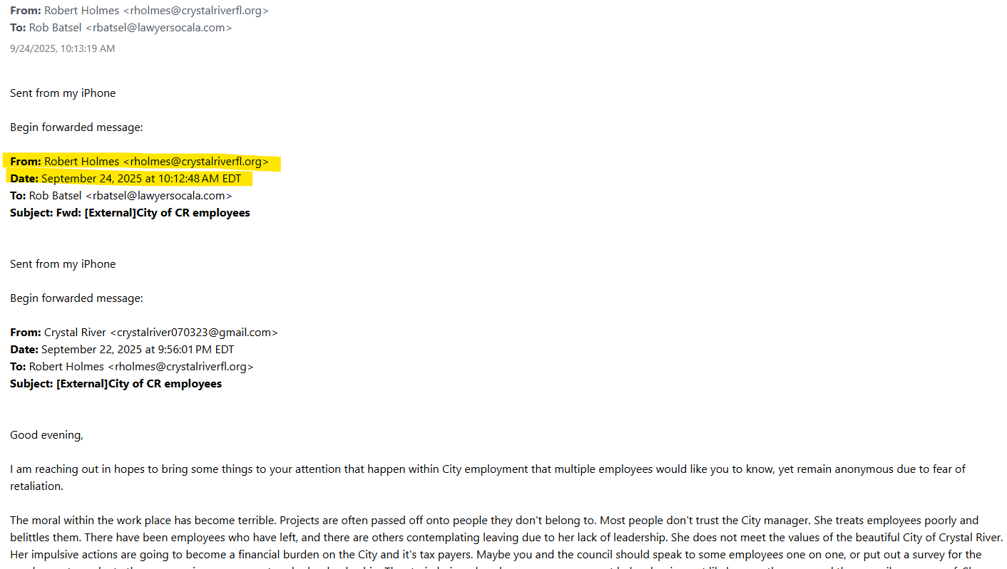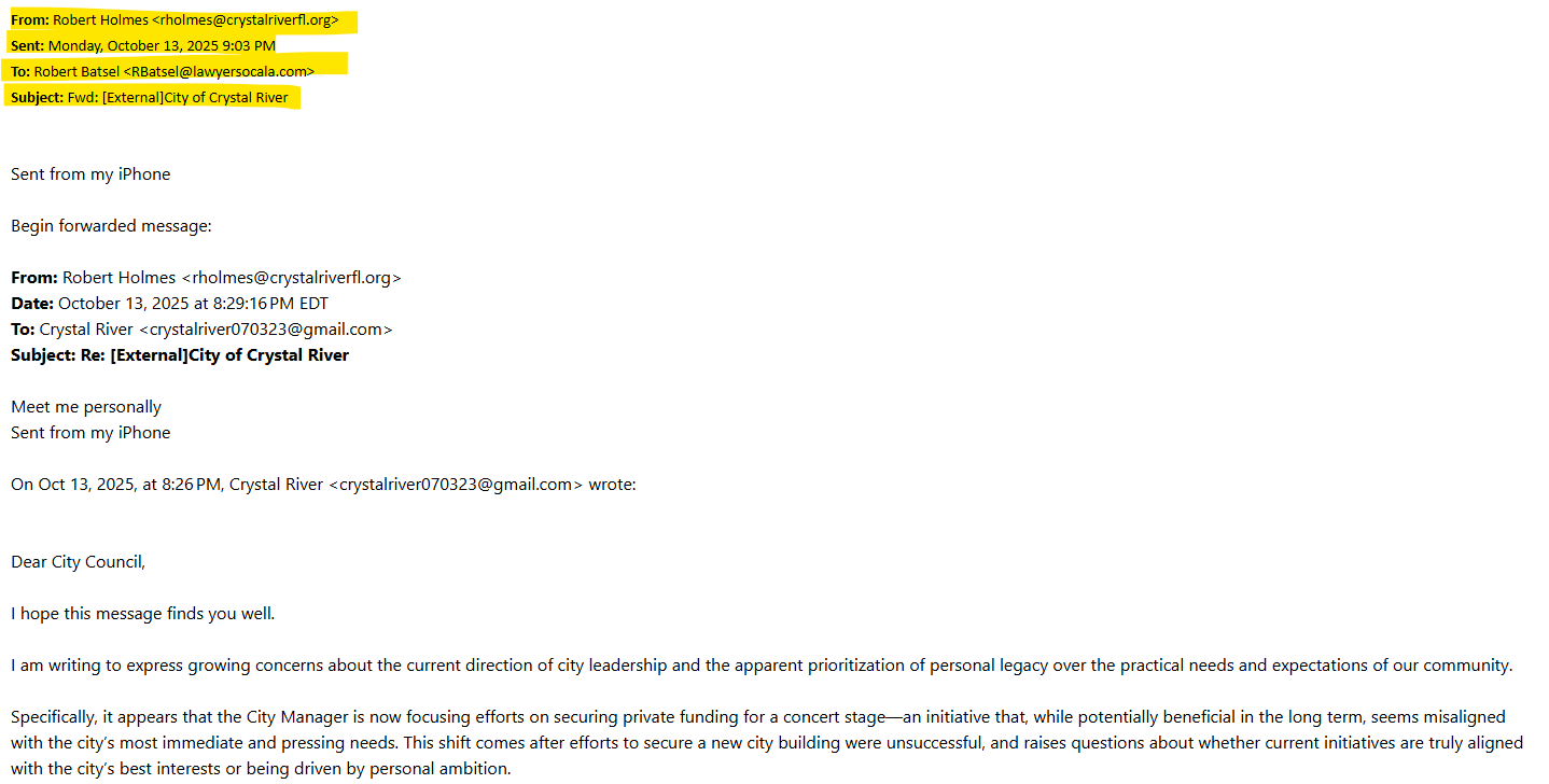 Meanwhile, Council member Robert Holmes forwarded 3 emails to Batsel.