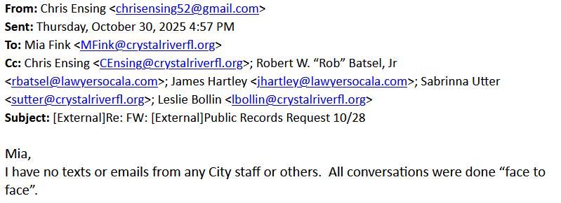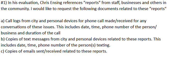 The records request did not show any other emails from council members to staff or replies to the emails that were sent, just those mentioned above.
