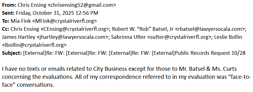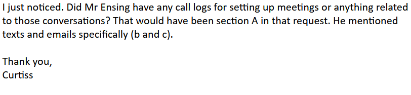 But now I am confused. Those were a lot of conversations referenced in the evaluation. None of those people called him on the phone or sent a text/email to set up a face to face meeting? That phone call and those texts/emails would be public record and subject to disclosure, but since none were disclosed, none of that happened?