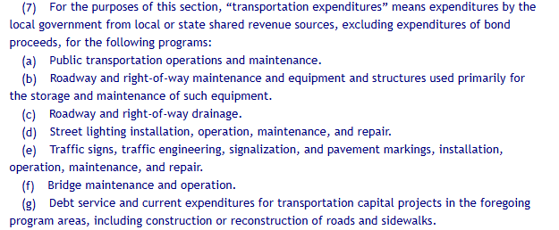 One thing I will disagree with the county on. On its gas tax website, the county claims that the 2nd option cannot be used for resurfacing. I do not believe that to be true. Reading the state statute and the ordinance suggests resurfacing is a valid use. However, the county tied that money to a bond, so it cannot be used until the bond is paid off. Those bonds being the 486 and 491 expansion projects.